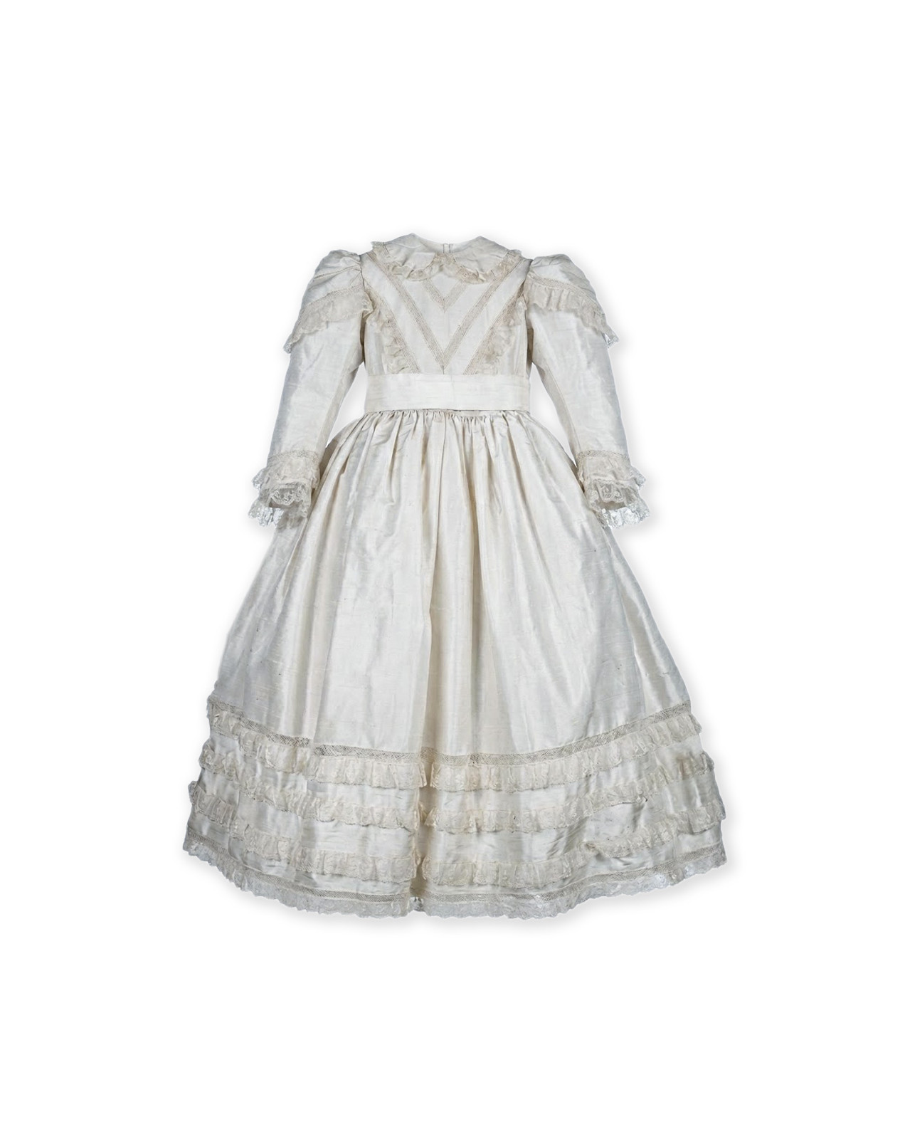 Versatility is a cornerstone of our production. To perfectly suit the season or the tone of your event, the dress can be tailored with either romantic short puff sleeves or elegant long sleeves. The skirt length is also fully customizable according to your preference, ranging from a classic knee-length to a more regal ankle-length, while always preserving the harmony of the tiers and refined lace inserts.