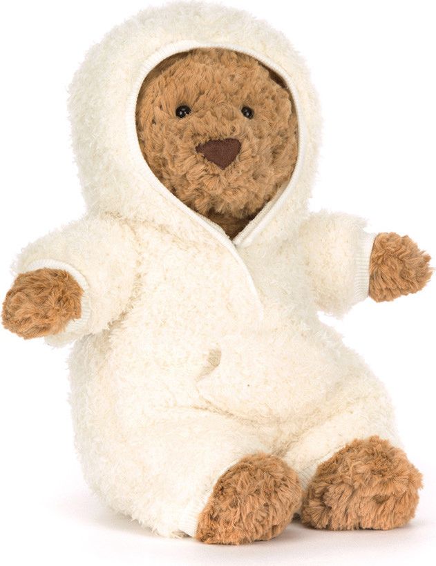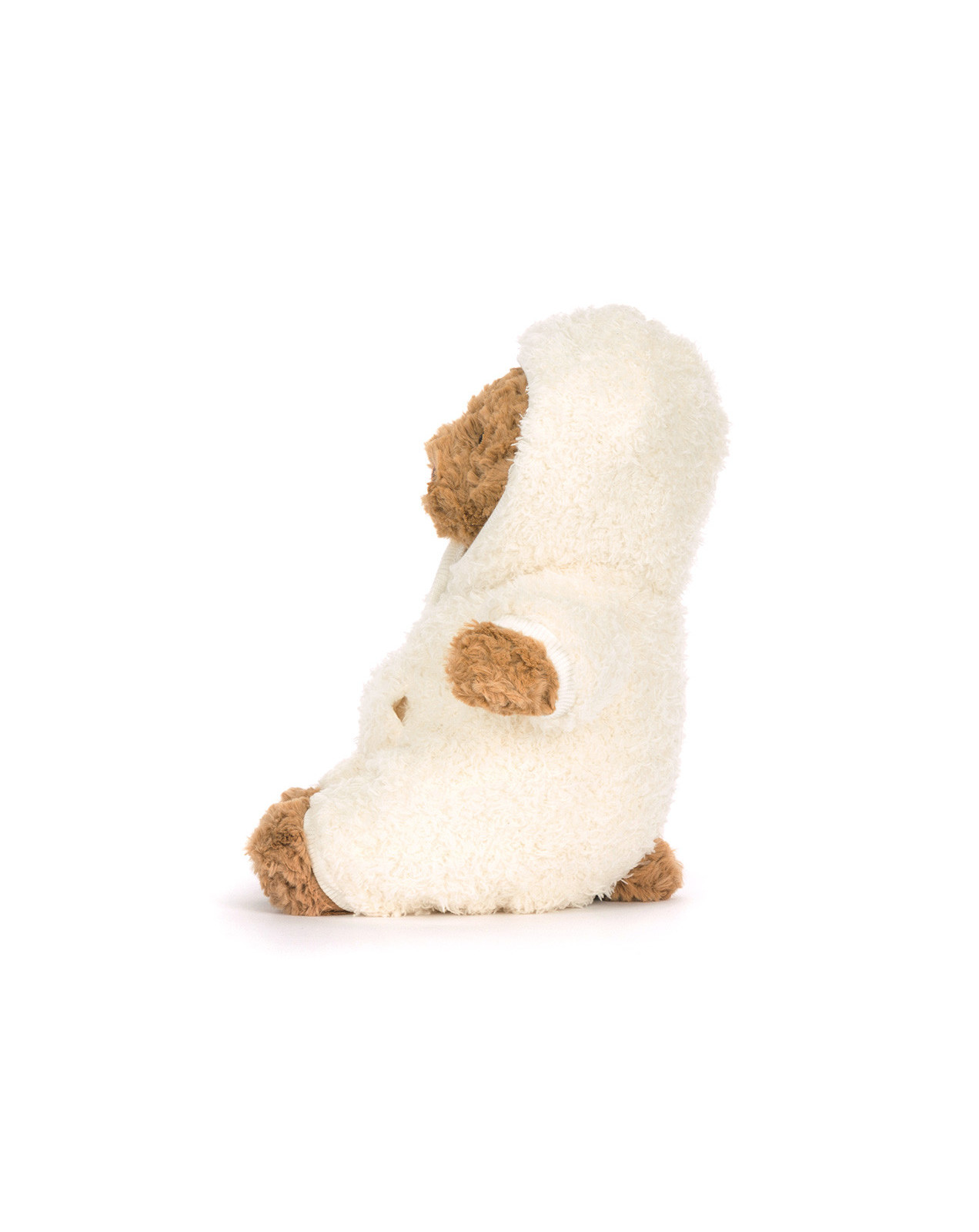 Bartholomew Bear All-in-one Outfit has discovered the ultimate secret to happiness: the onesie. Once cocooned in it, he’s officially off duty – slippers on, disco-ball off, snacks within paw’s reach. It’s not laziness, he insists, it’s self-care. Friday nights with friends are special: from popcorn with Bashful Bunny to falling asleep before the opening credits.