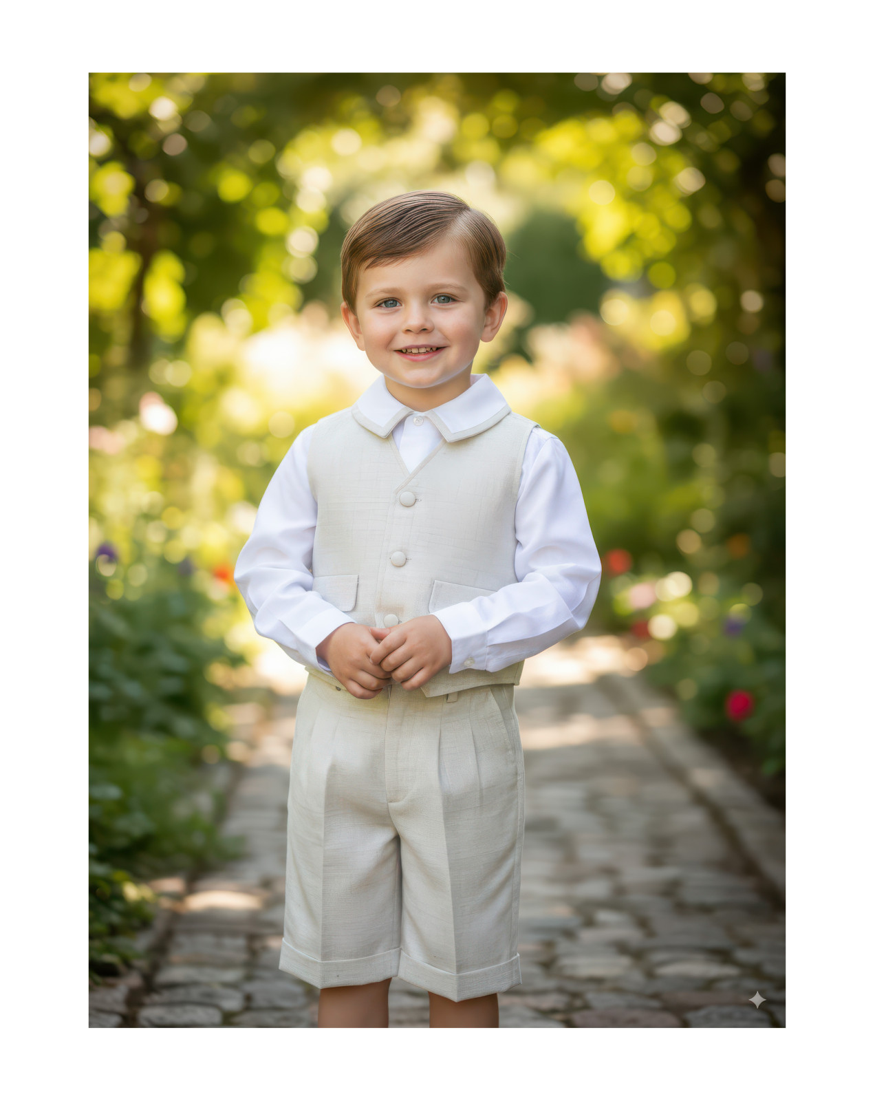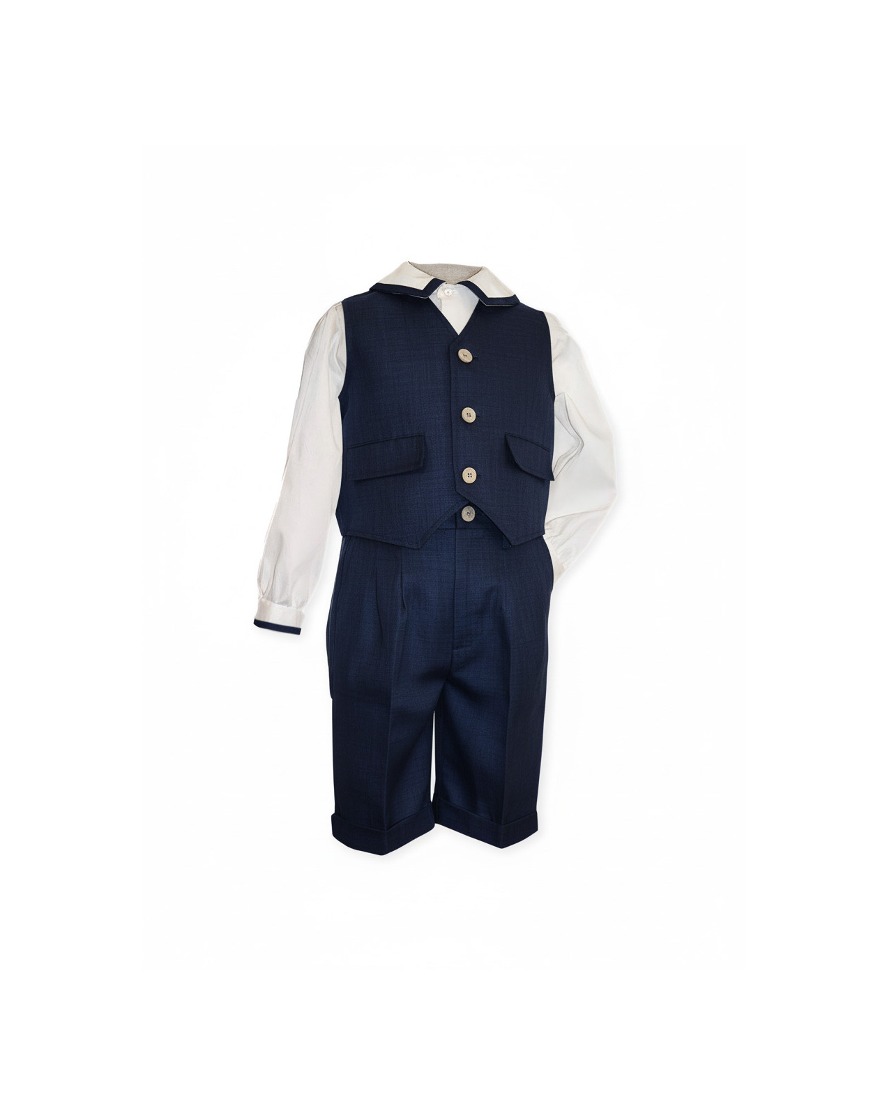 Completo elegante per bambino, con pantaloni, camicia e gilet.