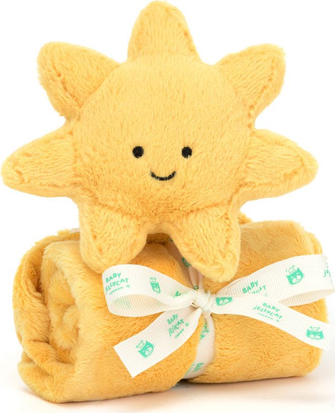 Aggiungi un po' di sole ovunque ti porti il pisolino. Con una copertina morbida come il burro in giallo oro e un allegro Sole Amuseables cucito su un angolo, questo ciuccio è un compagno caldo e confortante per i più piccoli.